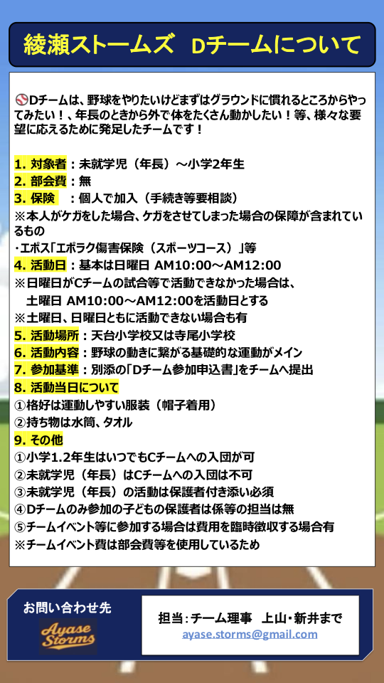 ストームズはDチーム(初心者コース)を発足させました。